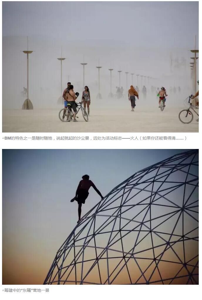 每年8月底至9月初在美国内华达州黑石沙漠(Black Rock Desert)举行,从建造到焚烧为期八天。在硅谷的一些深入骨髓的嬉皮戒律中,它属于一个你不得不去,放松、寻找、创造、与重现、修复的节日。